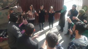 Ziyaretin ilk gününde Gençbank Alikev gönüllüleri ve Suriyeli gençler birlikte tanışma oyunu oynadı. Eğlenceli vakit geçiren gençler, oyun sonrası neleri sevip, sevmedikleri bahsettiler. Gençlerin dilleri farklı olsa bile ortak fikirleri “barış”tı. Sonra hep beraber Suryana Suriye Okulu’nu daha çocuk dostu bir okul olması için oyunlar ve şarkılar eşliğinde boyadılar.