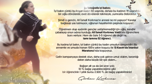 Gezi protestolarında darp edilerek 19 yaşında öldürülen Ali İsmail Korkmaz’ın ailesi tarafından kurulan Ali İsmail Korkmaz Vakfı bu yıl 52 öğrenciye burs veriyor. Ali İsmail’in abisi Gürkan Korkmaz, sosyal medya hesabından annesinin maratona hazırlanırken koştuğu bir fotoğrafı paylaşarak “Şu fotoğrafa iyi bakın; İyi bakın çünkü bu koşan kadın 50 yaşında, dahası bu kadının 19 yaşındaki bir oğlu dövülerek; evet dövülerek tekmeyle, yumrukla öldürüldü!” dedi.