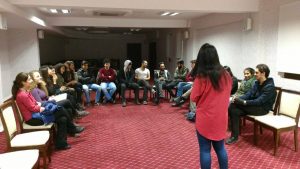 26-27 Ocak tarihlerinde, Hatay’ın Harbiye ilçesinde bir otelde gerçekleştirilen kampta ilk gün Toplum Gönüllüler Vakfı çalışanlarından Ceylan TARHAN’ın katılımıyla, proje döngüsü eğitimi gerçekleştirildi. Bir gece otelde konaklayan Düş Elçileri, etkileşimli bir şekilde gün boyu gerçekleştirilen eğitimin bir parçası olarak, örnek projeler de hazırladılar.
