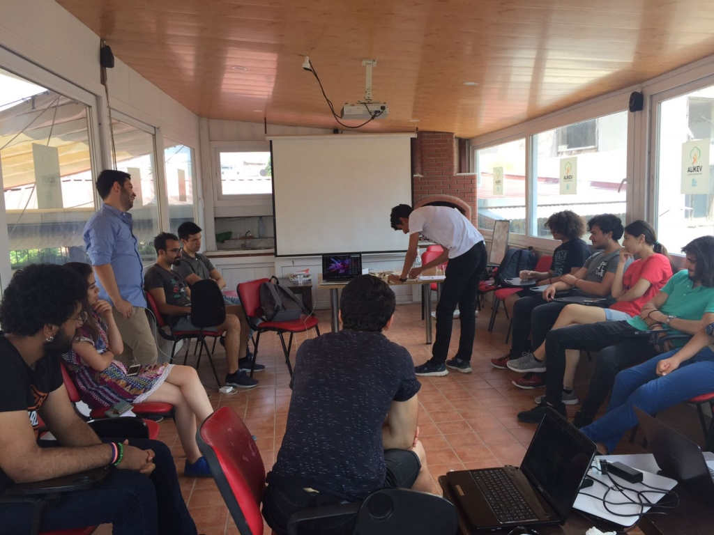 1-2 Haziran tarihlerinde gerçekleştirilen atölyeye katılan 9 Düş Elçisi gençle 2 gün boyunca temel seviyede algoritma kurma, ekip olarak oyun oluşturma ve kod yazımı konuları ele alındı.