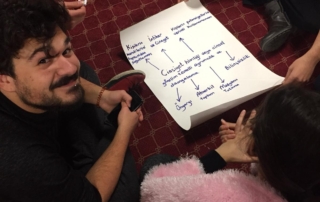 Gençlerin gerçekleştirdiği başarılı sosyal sorumluluk projelerini inceledik, örneklerden yola çıkarak “Biz neler yapabiliriz?” üzerine bolca tartıştık, ürettik. Toplumsal sorunları yaratıcı drama atölyesinde canlandırdık, çözümlerimizi sunduk. Günümüzde sosyal medya kullanımı ve online araçlar üzerine konuştuk. Sosyal medyanın gücünü projelerimize nasıl yansıtabileceğimiz üzerine tartıştık, grup çalışmaları ile kendi kampanyalarımızı yarattık.