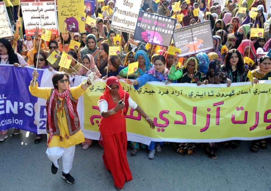 Pakistan’da da Demokratik Kadın Cephesi’nin çağrısı ile kadınlar 8 Mart’ı sokaklarda kutladı ve yürüyüşe polisler müdahalede bulundu.