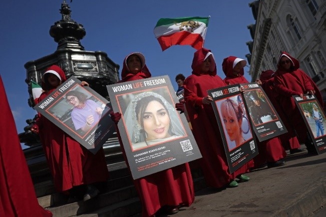 İngiltere’de 8 Mart’ta ise kadınlar The Handmaid’s Tale kostümleri giyerek Kürt kadınlarının özgürlük sloganı olan ‘’jın, jiyan, azadi’’ ‘Kadın, Yaşam, özgürlük’ anlamına gelen ‘Woman, Life, Freedom’ pankartları taşıdı.